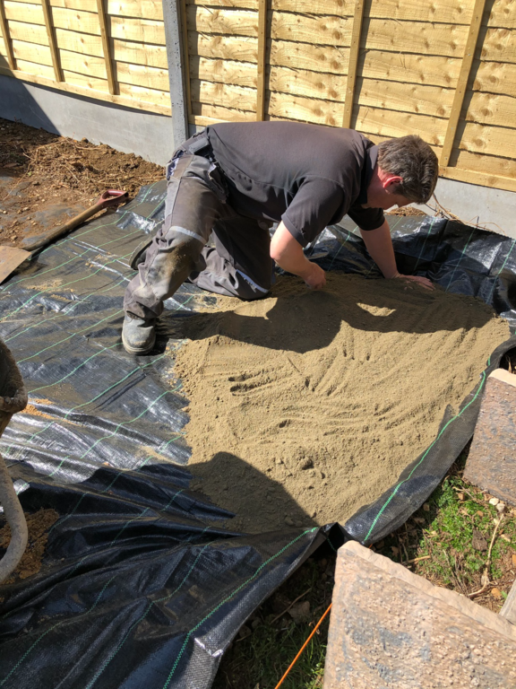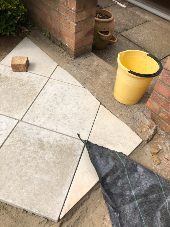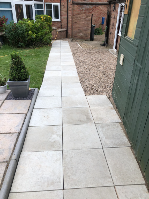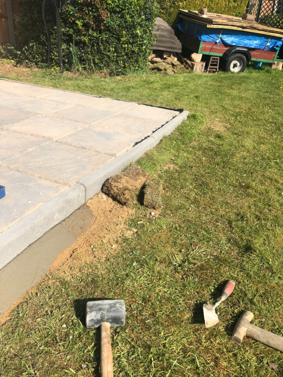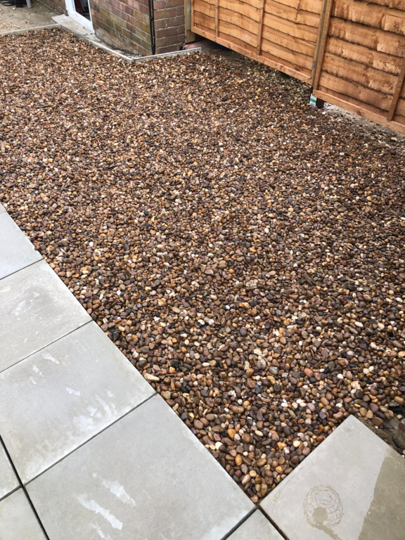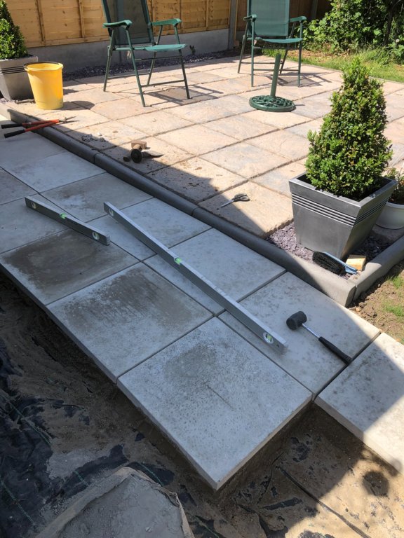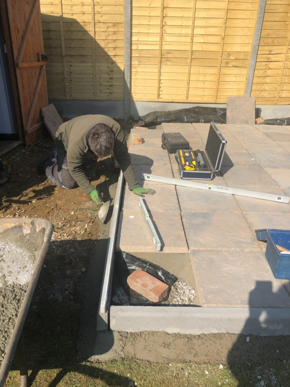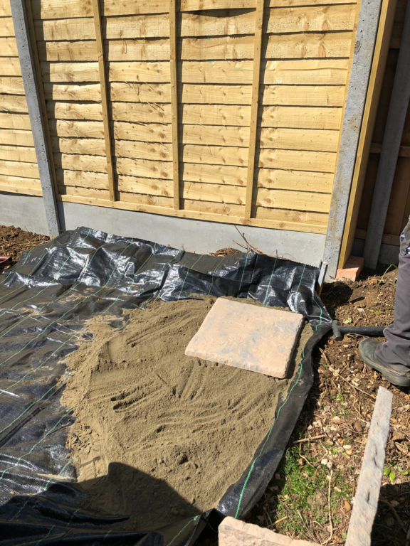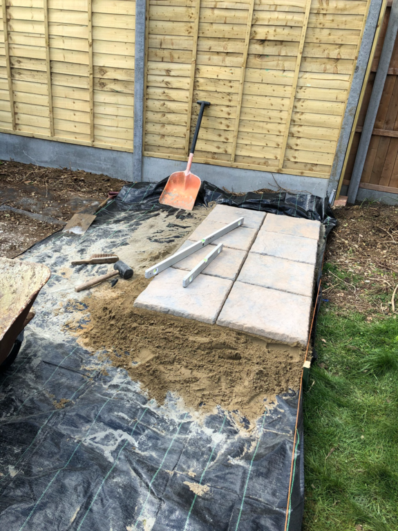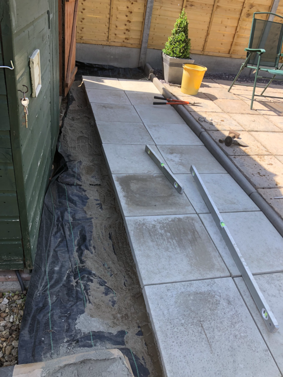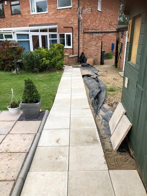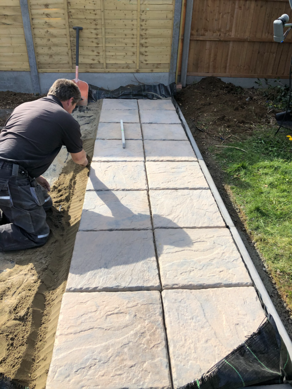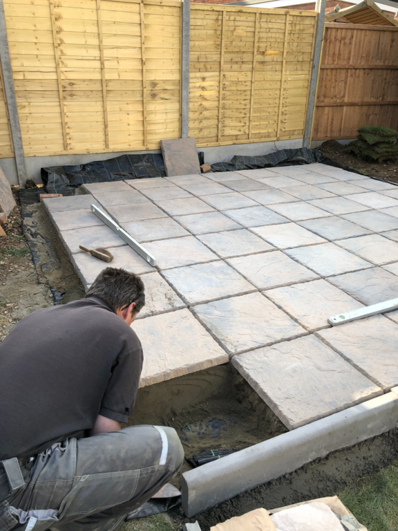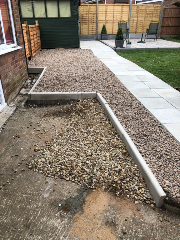 Once we have sorted out an easy to maintain garden design was agreed, we started by sorting out their hedges by trimming and levelling them and taking one out fo the hedges then putting up a new fence at the top of the garden foaled by a new patio and pathway to their garage and shed.