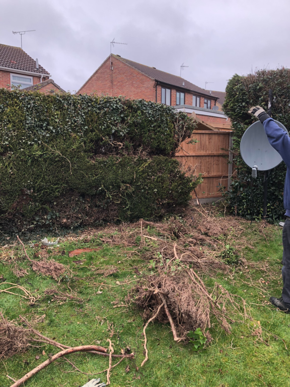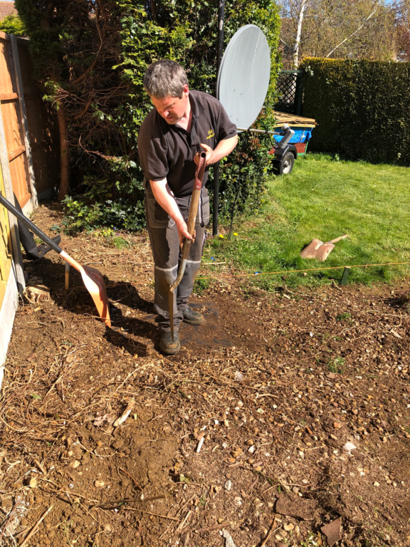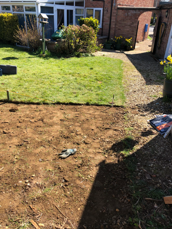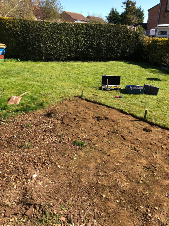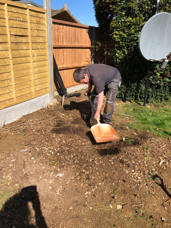 We started by taking down the hedge at the end of the garden then cleared the area for where the 12ft X 12ft patio is to go.